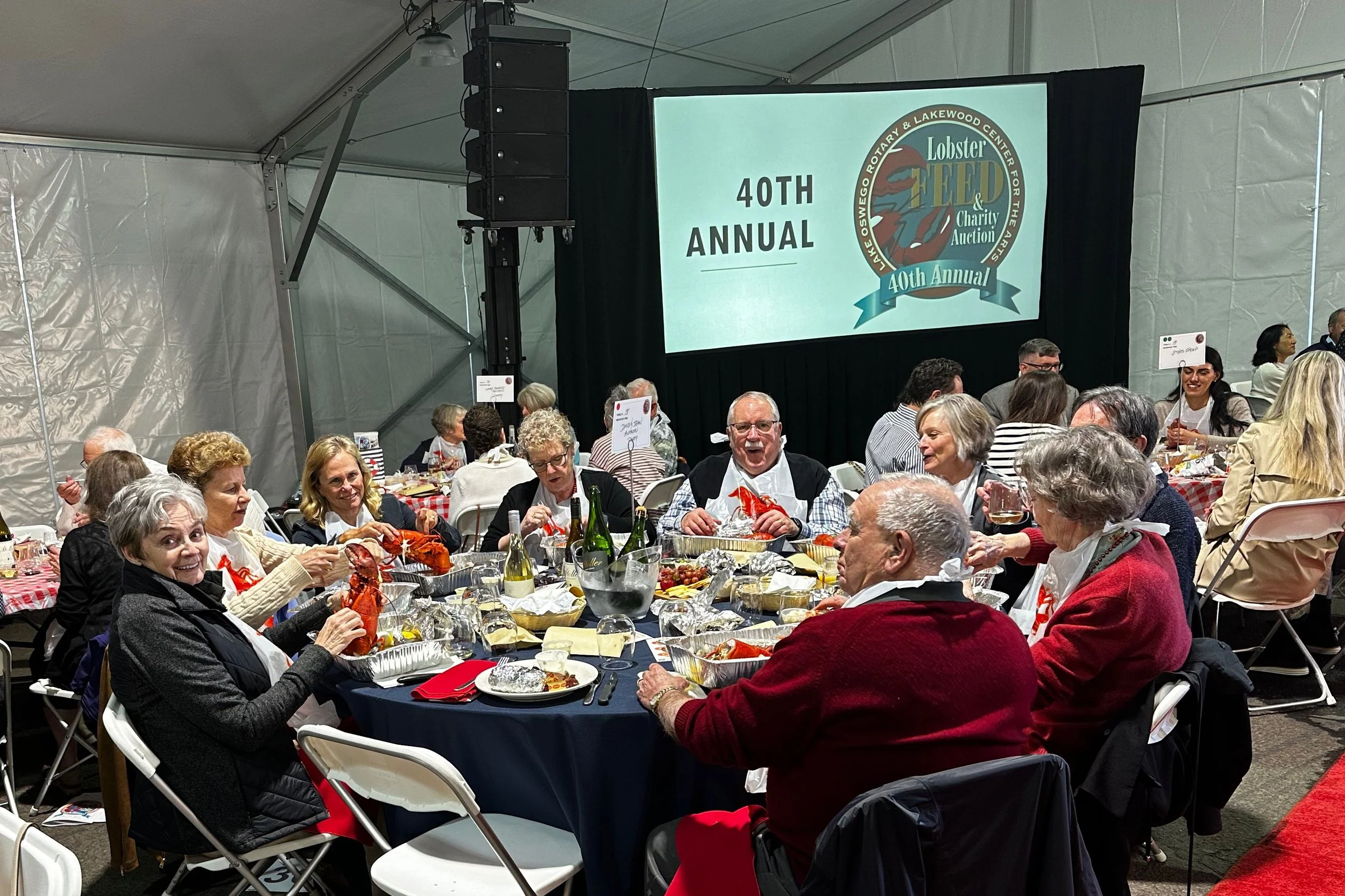 The Lobster Feed under the big top at Lakewood Center for the Arts. Image provided by Lake Oswego Rotary.