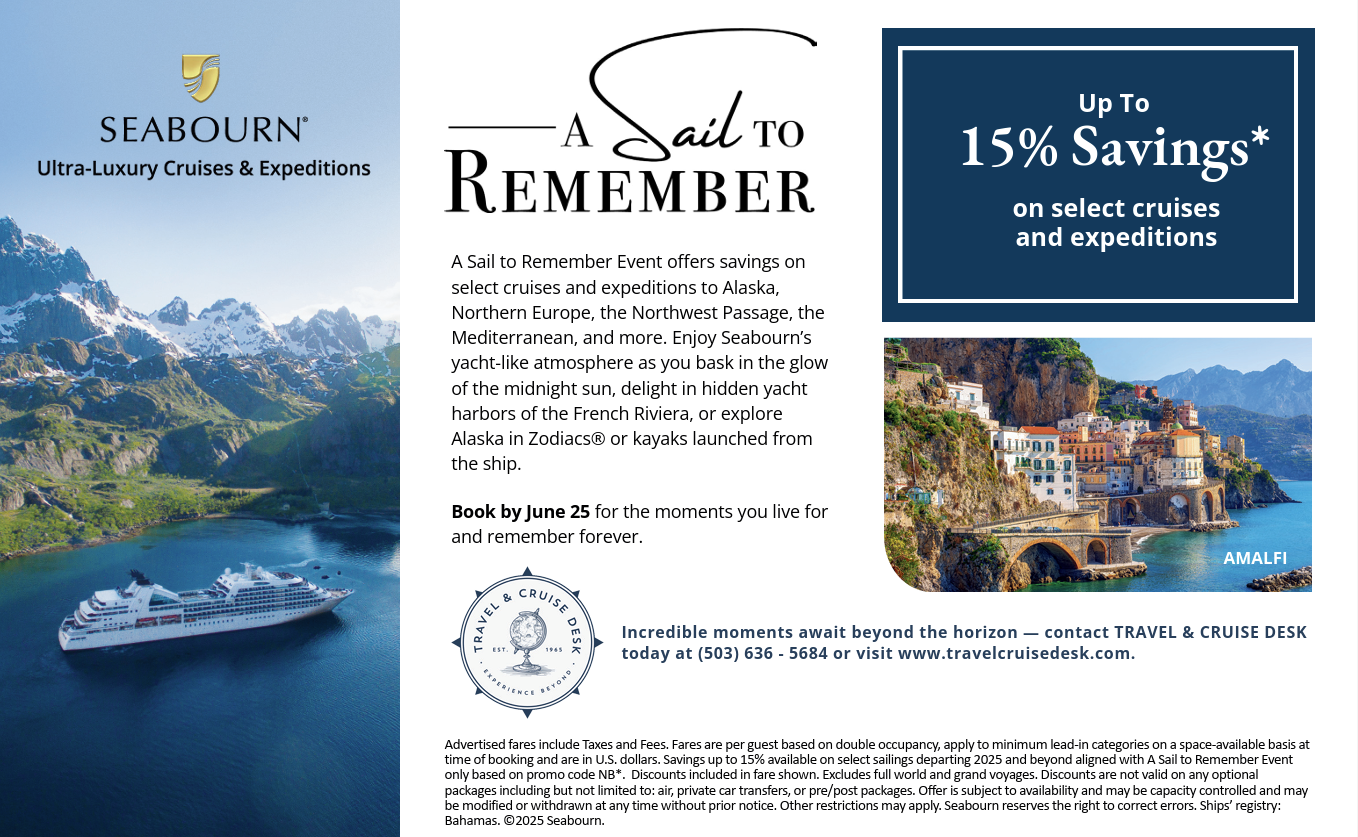Lake Oswego’s premier summer soirée, the 41st annual Lobster Feed & Charity Auction, returns on Saturday, June 14, 2025, under the iconic big top at Lakewood Center for the Arts. This beloved event, co-hosted by the Lake Oswego Rotary and Lakewood Center for the Arts, has raised over $4.2 million to support local and global causes. This year, Travel & Cruise Desk has partnered with Seabourn and provided a seven-night ocean or expedition cruise as one of many great items available for auction.
