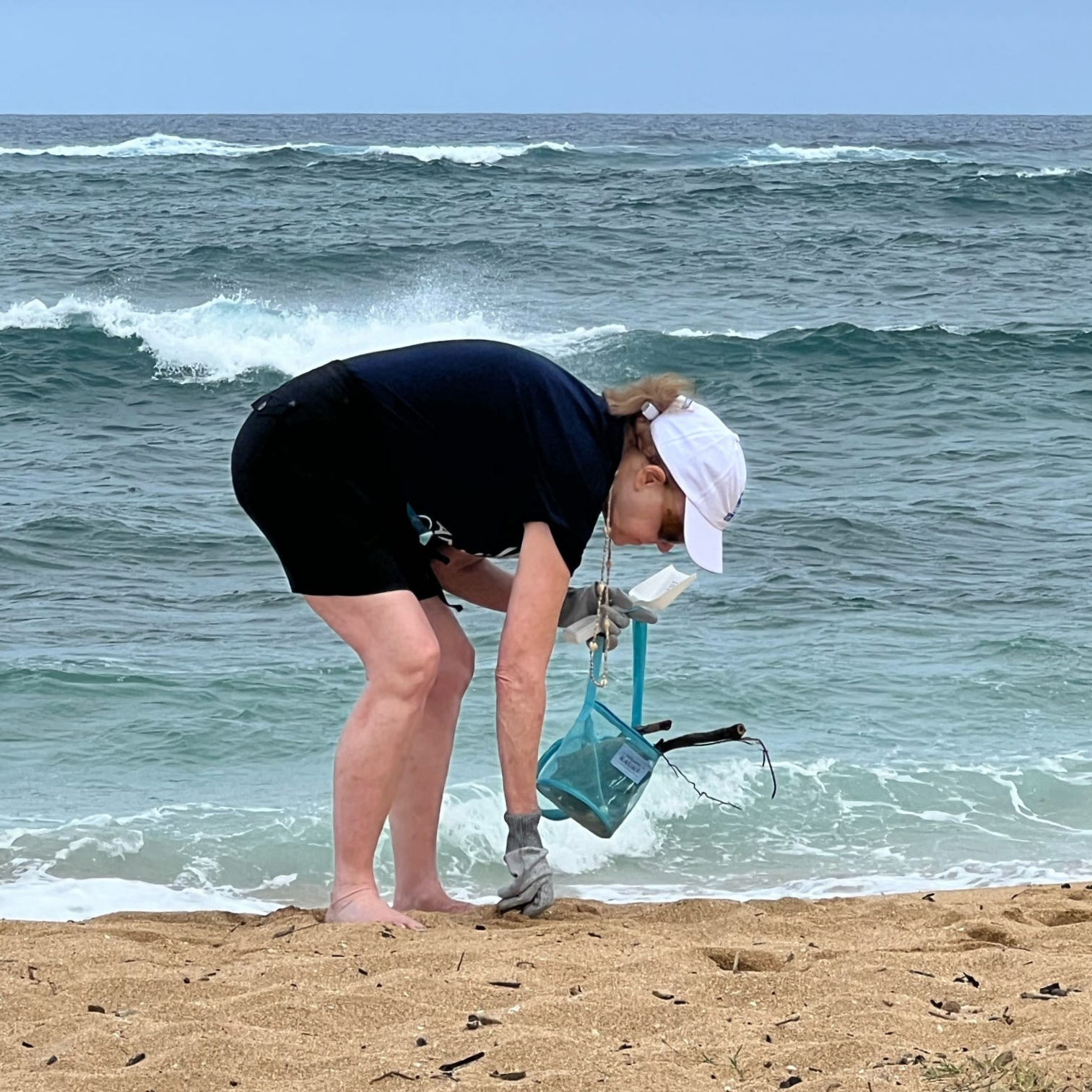 Melinda Wittman participating in a beach cleanup activity on O‘ahu, blending luxury travel with meaningful give-back experiences.